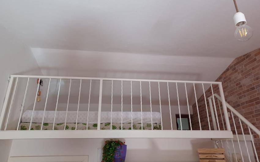L’abitazione è composta da una zona giorno con angolo cottura attrezzato, tavolo da pranzo e area relax, una camera matrimoniale luminosa con accesso al balcone, bagno con doccia e soppalco con letto matrimoniale.